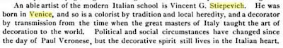 The article goes on to say that he was trained at the Royal Academy of Venice by Karl Von Blaas from the Austrian Tyrol. Stiepevich became a member of the Royal Academy of Milan in 1868. In 1872 he received a commission to decorate the Chamber of Commerce in St. Louis, Missouri and he came to the U.S. and eventually settled in Brooklyn. This is the same chronology borne out in the census records!